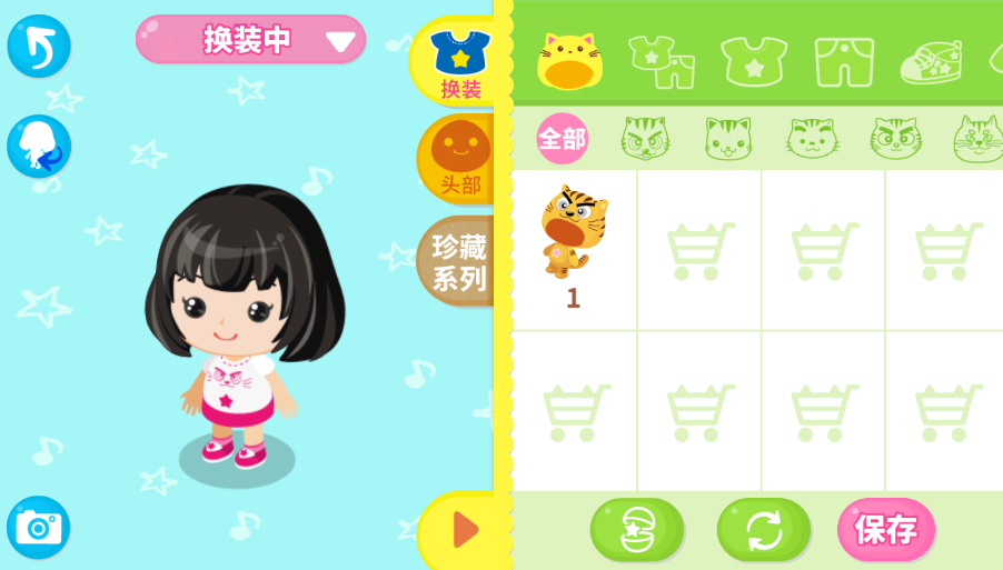 3、确定最终的装扮方案后,点击保存按钮,即可将搭配好的猫咪形象存储至本地相册或个人中心。