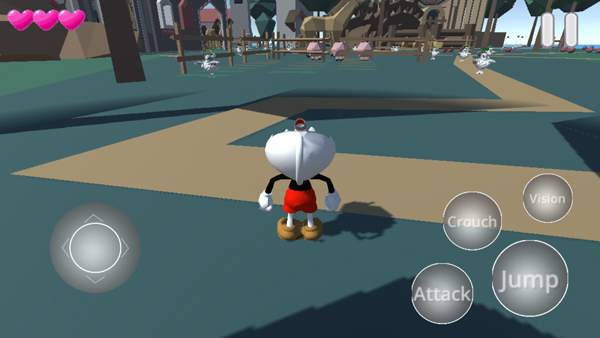 1、用杯头超能力奔跑并跳过障碍物,敌人尽可能远离它们