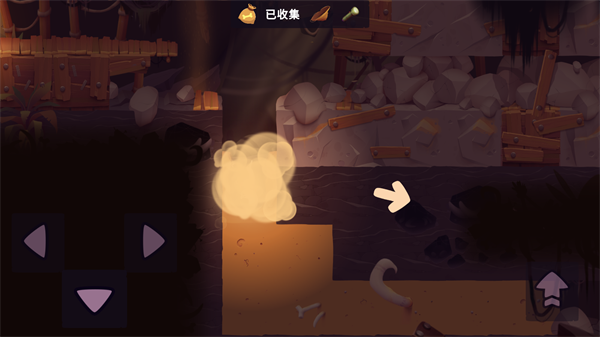 1、按住箭头可以控制冒险狗移动。