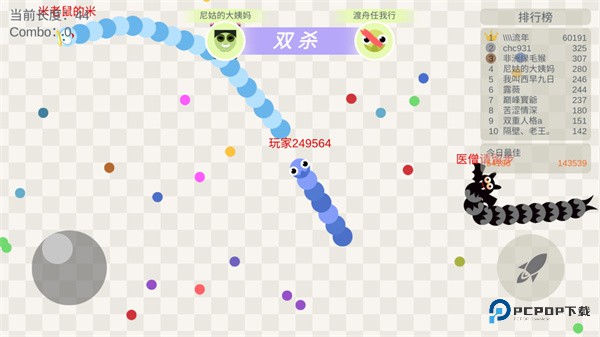 《小蛇斗蜈蚣》是一款好玩的休闲吞噬竞技手游,你可以轻松操控摇杆移动自己的小蛇,吃掉地图上随机刷出的彩色圆点让它不断变长。但得小心蛇头别碰到其他蛇身或障碍物,一撞游戏就结束了。尽管小蛇动作灵活,却容易陷入大蛇的包围圈,灵活运用加速和转向技巧能巧妙躲避攻击,还能吞噬对手尸体快速变大。赶紧下载体验,开始你的吞噬冒险吧!