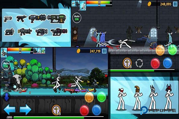 4、真正开始挑战后,左右方向键控制火柴人移动,那四个额外按键就是放技能、施展各种攻击的啦。
