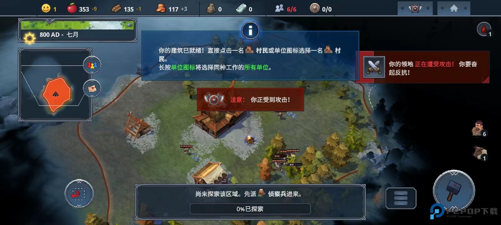 9、注意了!如果你的领土边缘冒出红色提示,可要当心啦,敌人的攻击来了!赶紧组织你的战士前去防御反击吧!