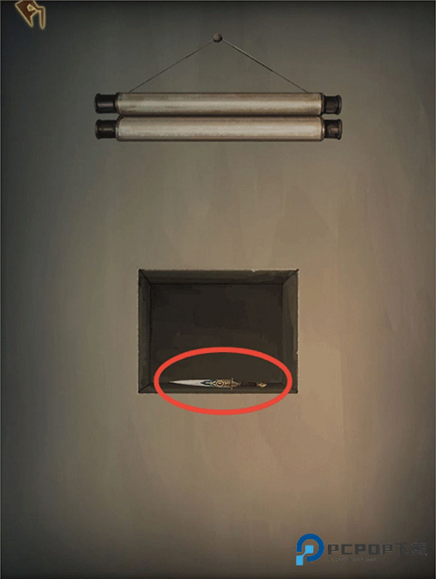5、走廊谜题:带着匕首走到走廊最里面。咦?地上好像有个盒子,盒子底下压着张纸片?
