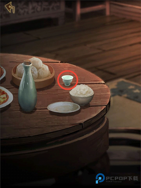 2、楼上寻杯:拿着钥匙走上楼梯,用它打开楼上那扇锁着的门。进去后直奔屋子中间的桌子,伸手就能在桌上摸到一只酒杯。