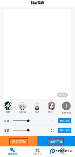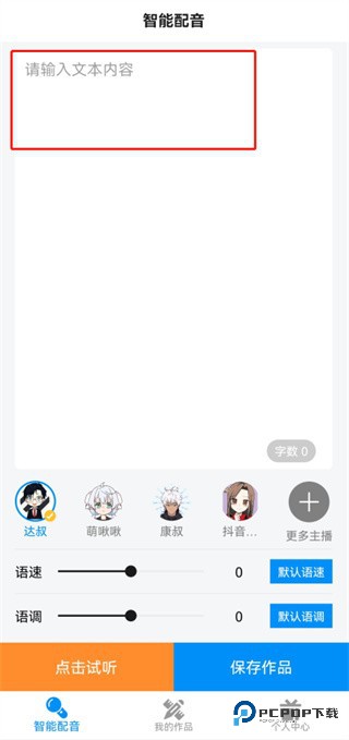 3. 智能配音,输入文字瞬间变成语音,有超过一百种语音颜色可供选择,并支持音量,语调和速度调节。