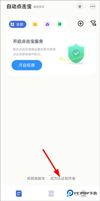 1、打开自动点击宝官方版,在主界面能看到主页、教程、我的这些部分,点底部那个 "成为认证制作者" 的入口。