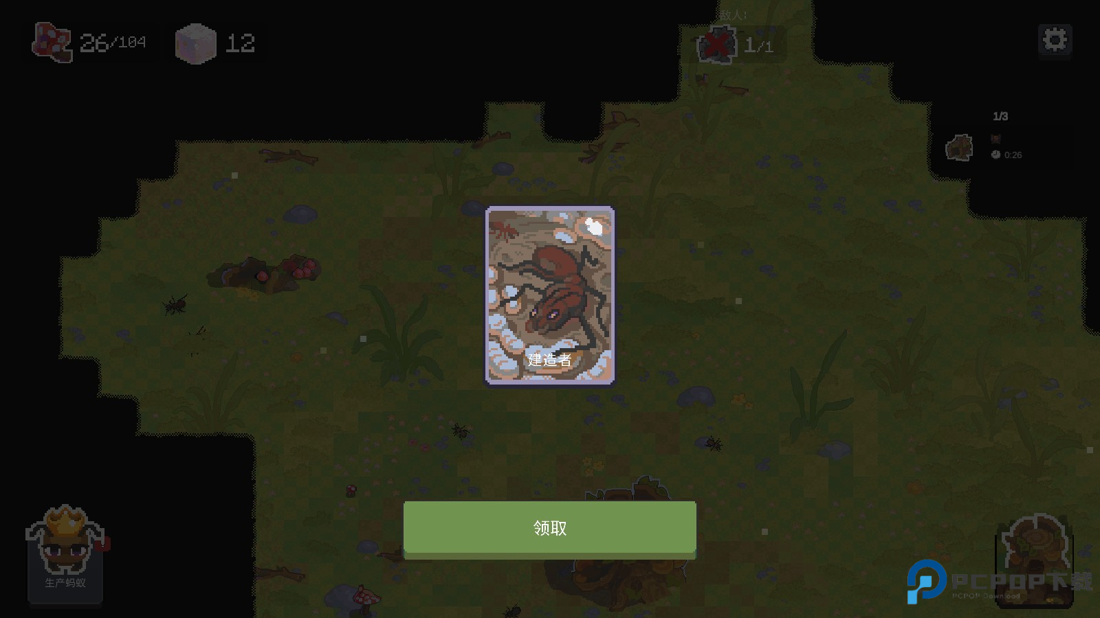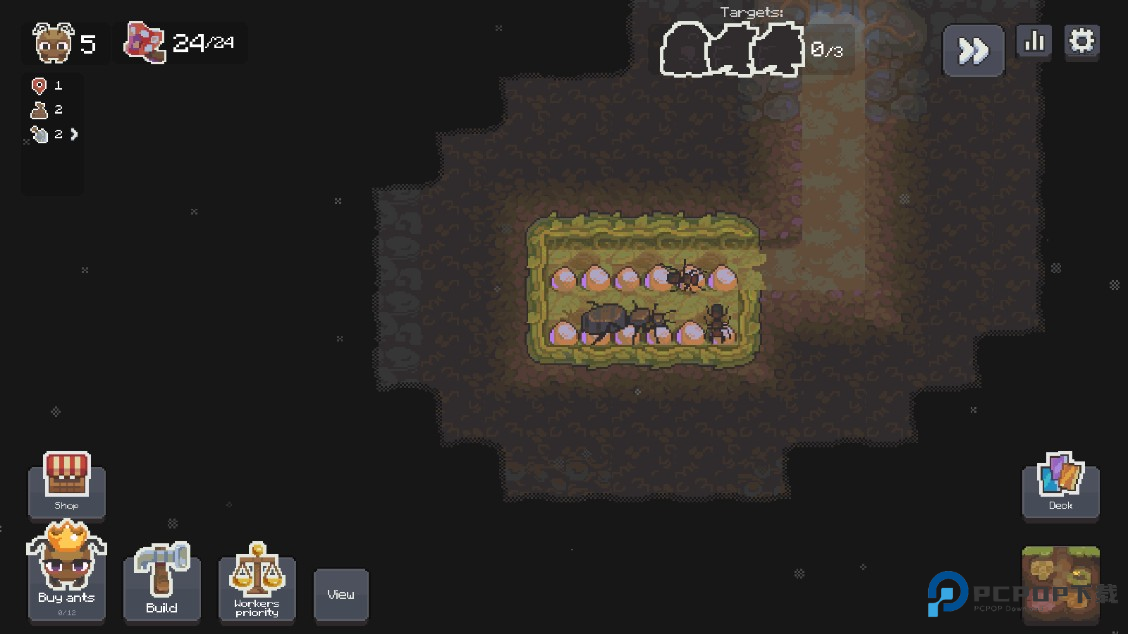 2.生成的蚂蚁会自动干活,不用玩家指挥它们做什么。