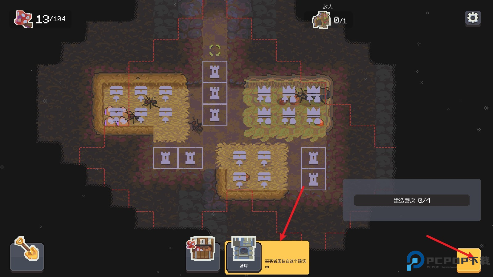 6.建好兵营后,有战斗力的蚂蚁就能住进去。