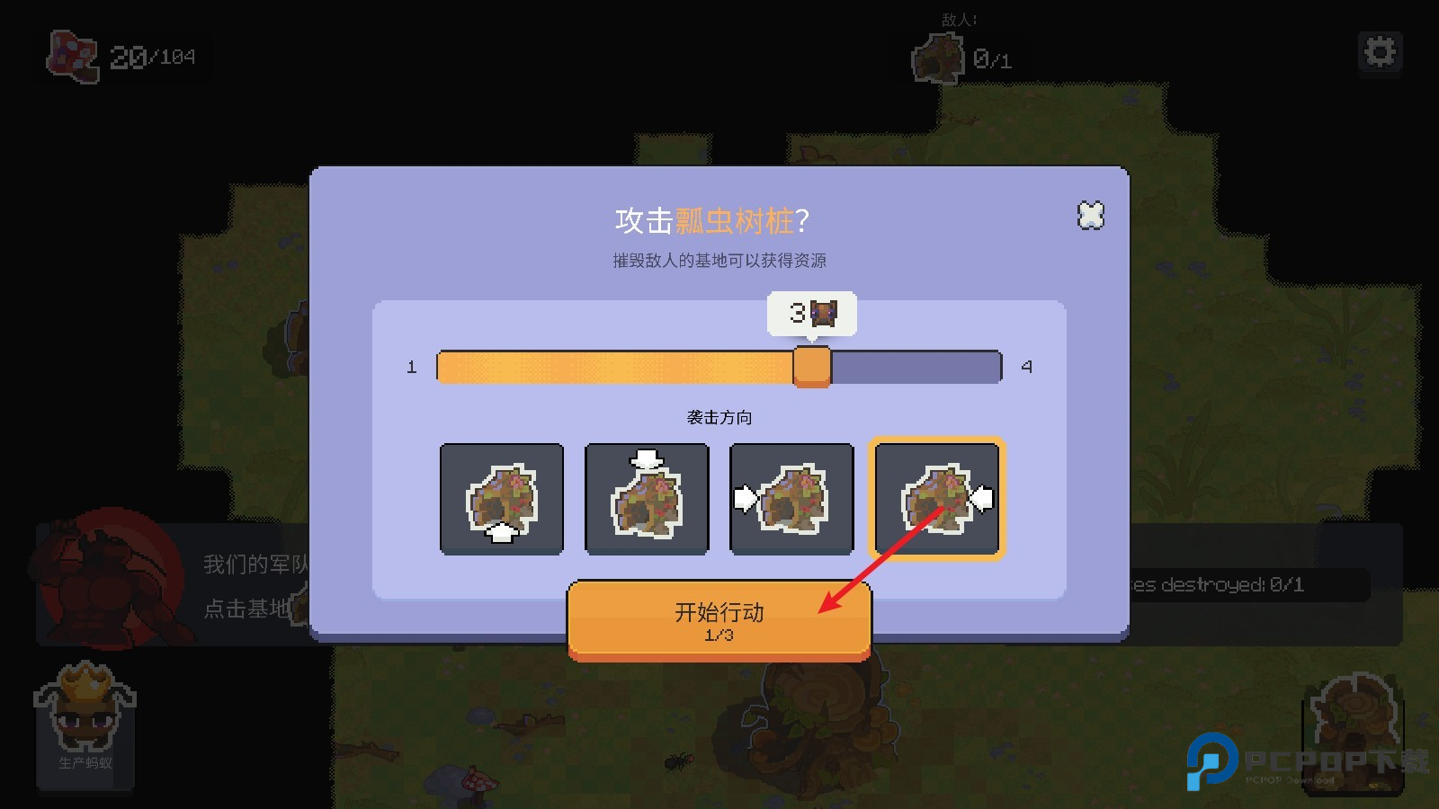 7.准备完毕就能点击附近的敌人巢穴发起进攻。
