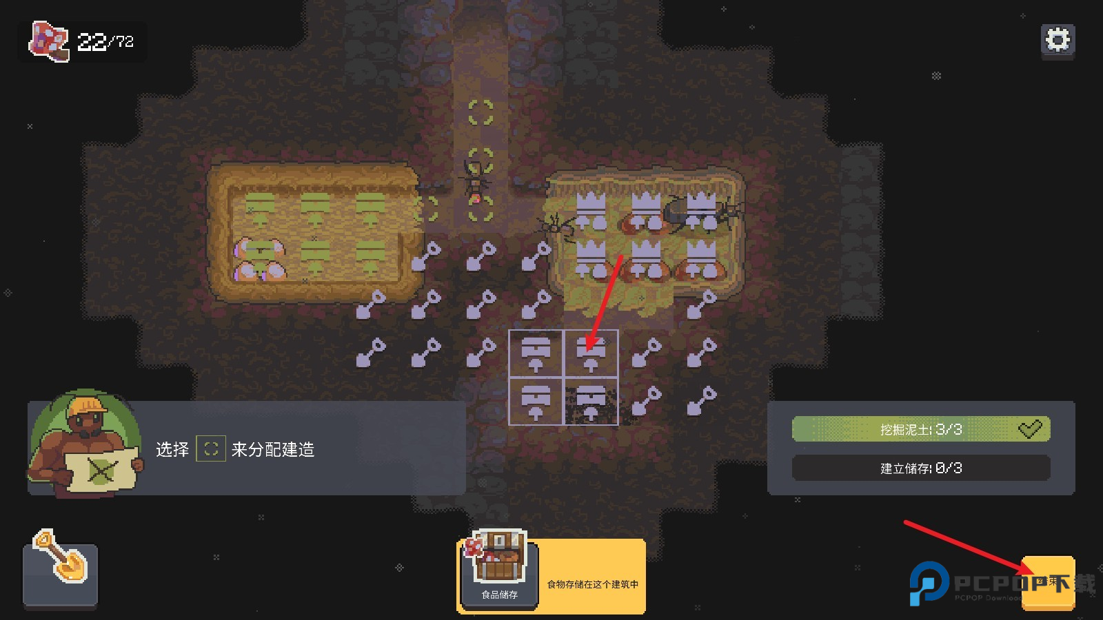 3.进入地下蚁丘界面,点选想挖掘的位置,确认开始挖掘。