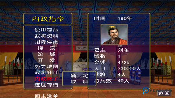 1、启动游戏后,从曹操、刘备等预设君主中挑选一位开始故事;