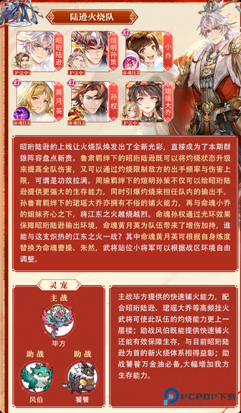 刷副本打 P V E 关卡的话,平民组合可以试试这套。魂张辽最好能升到 1 火状态,别给他搭配羁绊效果哦。