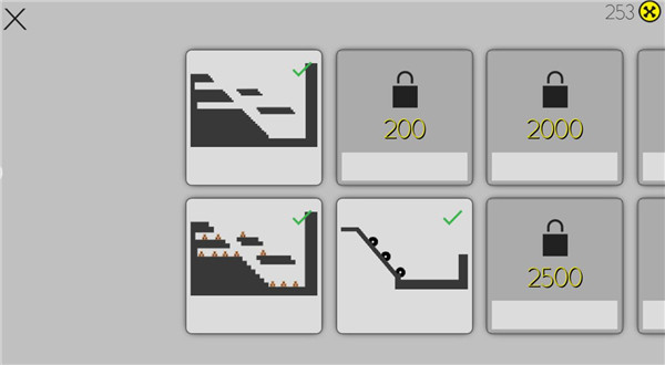 2、选择关卡,里面有各种关卡可以解锁,金币越高的楼梯场景布置就越复杂,火柴人受到的伤害越高的可能性就越大,获得的评分就越高,奖励就越多