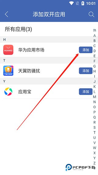 2、点击添加就可以添加应用双开。