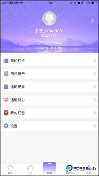 2、随后我们登陆一下,来到称重界面把自己真实的身高体重填上,注意一定要现量现填哦