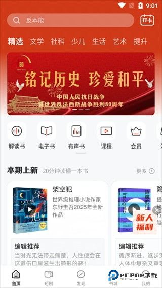 有【解读书】【电子书】【有声书】等功能入口,展示【本期上新】书籍内容
