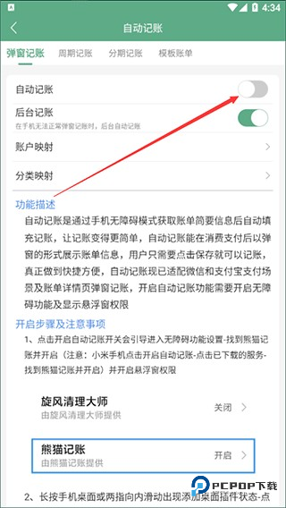 3、开启自动记账选项,最后按照当前页面下方的步骤进行一些设置即可。