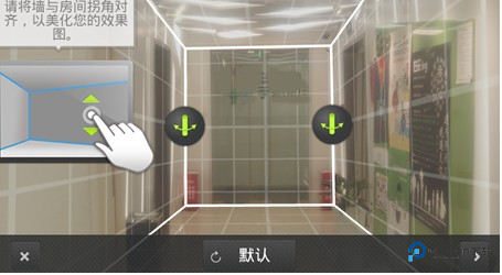 2、拍照后,软件会自动对照片进行测算,几秒钟后你将看到这个界面。这时需要手工进行微调,只需要通过拖拉白线,对其空间的几条交界线,大概对准后点击屏幕右下角的尖括号。