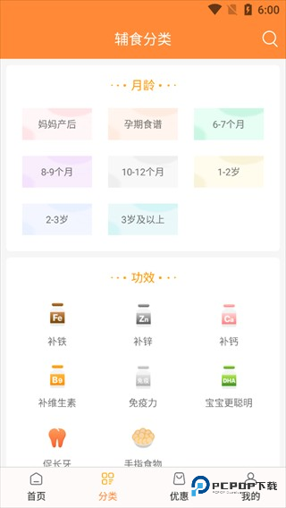 6、选择宝宝年龄段,这里的辅食都是以图文的方式呈现