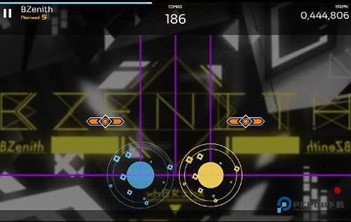 2.音符花样挺多的:蓝点是点一下,红条要长按,黄键需滑动。瞧见两个音符叠一起变成橙色?那得双手齐上同时按准。