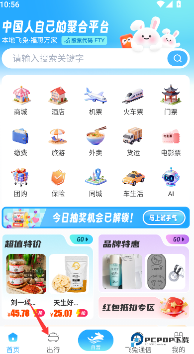 1、找到并点击“出行”服务入口,进入出行功能选择页面。