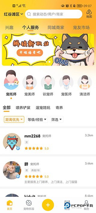 有专业的服务者、优质的商家提供各种养宠服务供宠友挑选