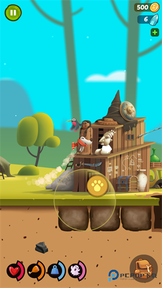 2、在关卡中会出现许多有缝隙的地方,小狗一不注意就会掉下去,但是细心的玩家就会发现游戏中那些场景道具其实是可以移动的。玩家可以将道具推到合适的缝隙处填补缝隙,减少掉下去的几率。