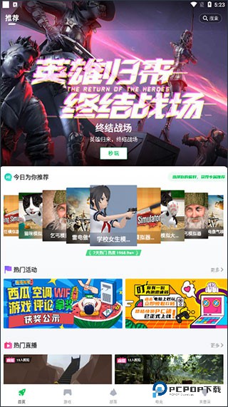 2、在首页中有着软件为你推荐的游戏,以及一些热门的活动。