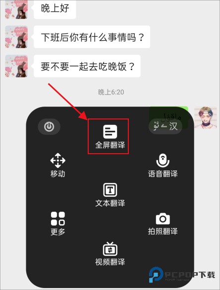 5、点击悬浮球,选择全屏翻译,这时就可以翻译屏幕上所有文字了,也可以拖动悬浮球翻译指定文字进行翻译。