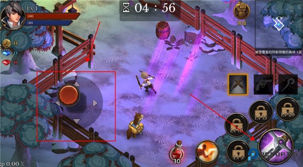 3、操作方式是很经典的,左边摇杆控制角色移动,右边则是技能和普攻键