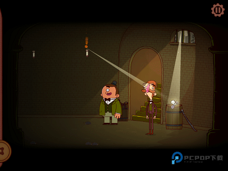17、地窖点亮找伯爵:进入左边地窖,把钻石和老爷爷的破镜片组合放木桶上反射光线,点亮蜡烛(完成记得回收钻石哦)。