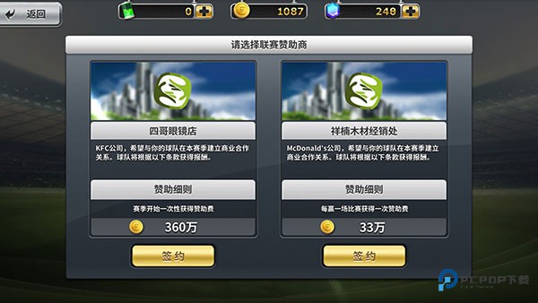 2、联赛开赛前需选择赞助商合同: