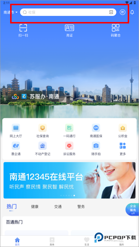 医疗健康:对接 "南通医保"APP(需独立下载),可挂号预约、查询就诊记录、缴纳医保门诊费。