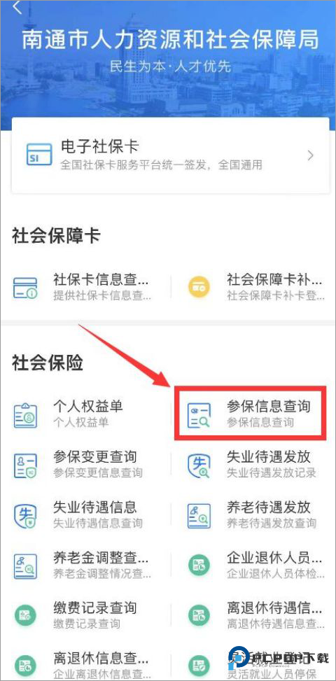 1、打开南通百通 APP,在首页找到 “社保查询” 的入口,点击进去。