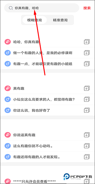 3、最后将对方的话复制粘贴至搜索框搜索就能获得有趣的回复内容,再复制发送给对方即可。