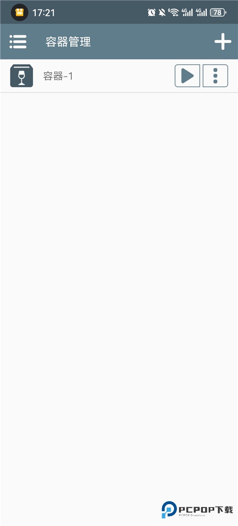 1、启动游戏后,点击右上角“+”图标创建容器。
