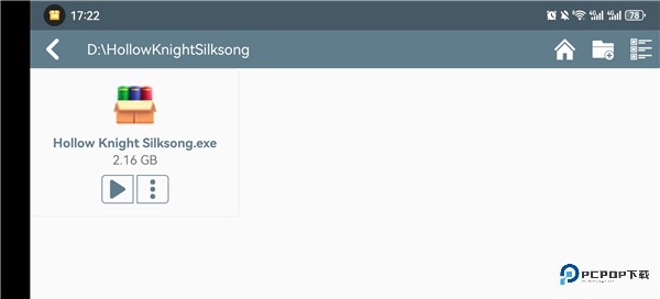 5、解压完成后返回即可看到游戏目录,选择"HollowKnightSilksong.exe"。