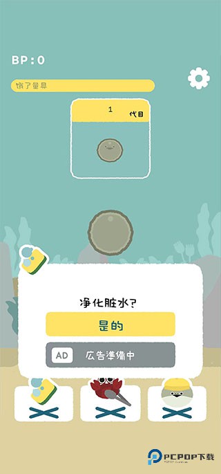 1、游戏一开始内,我们获得的是虚无鱼BasPi的鱼卵状态,这个时候只要净化脏水就好了,接下来就是耐心等待它孵化