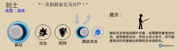 剑士:类型属于混战,一见到就会五马分尸,具体操作如下。