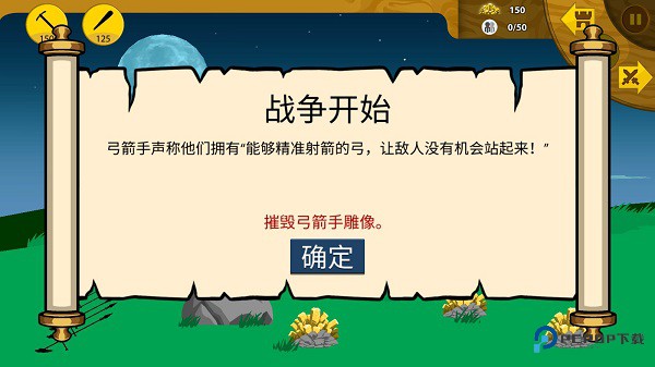主画面会显示战斗地点。屏幕左侧是您的要塞、一座雕像和金矿脉。要研究敌军,请在屏幕上向右滑动。在这里你可以追踪敌人进攻的时刻并评估你获胜的机会。