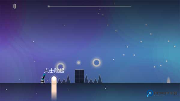 跳起是根据这些一段一段的小尖刺或障碍物来决定使用这个按钮的。跳起就是点击屏幕即可。