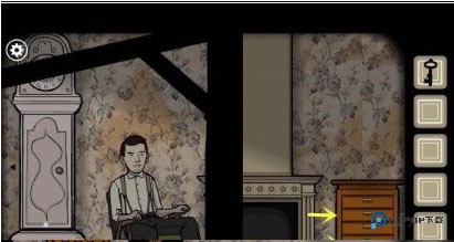1、这关故事发生在 1860 年夏天。进门第一件事?眼睛往左上角的墙壁上看,那里有幅画,检查它就能拿到一把钥匙哟。
