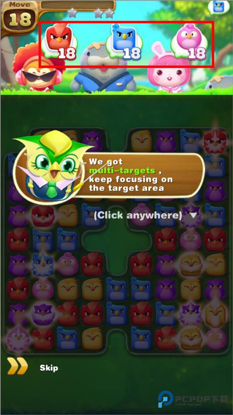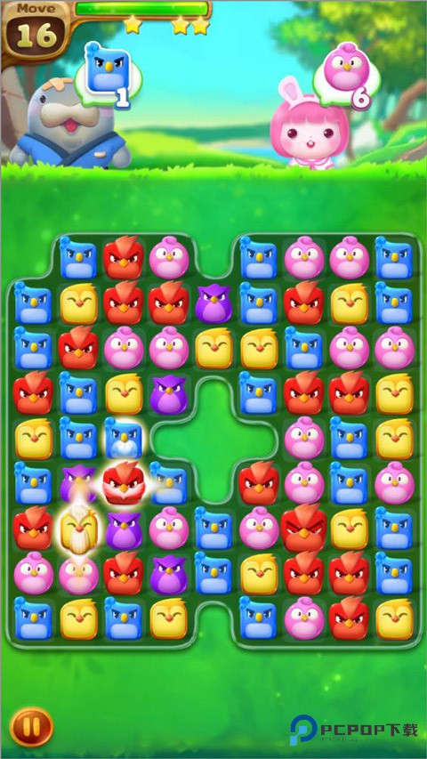 2、角色的独特技能融入到消除策略里,通过消除小鸟推进剧情故事,还能体验到小鸟们和绿猪的逗趣对抗大戏。