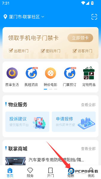 1、点击首页底部的“短剧”入口,就像推开社区文娱小剧场的帷幕,精彩内容即刻呈现眼前。