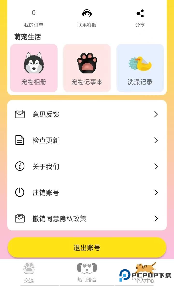3、然后点击个人中心,可以进行宠物照片的上传,记事本以及洗澡记录等操作。