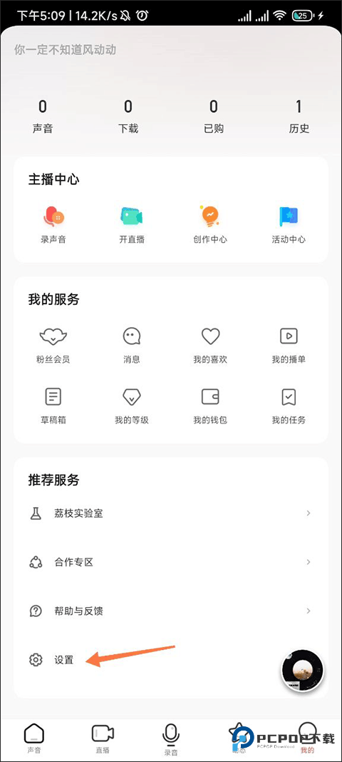 1、得先打开荔枝 FM 的 App,找到里面的 “设置” 选项点进去。