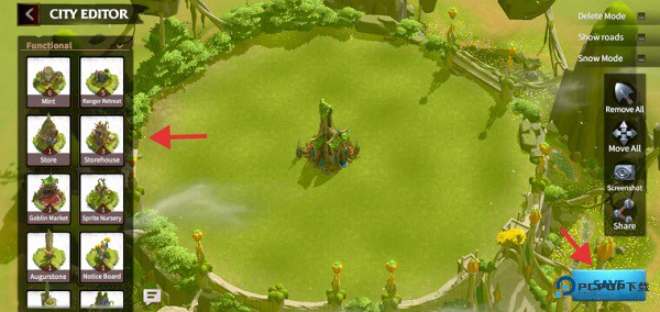 城建自由 DIY!点城内左侧锤子图标→建筑菜单→右上角小锤进入城市编辑器。任意拖拽建筑位置,或点 "全部移动" 一键清空地面(注:建筑不会消失,暂存左侧栏)。