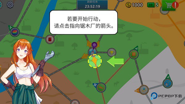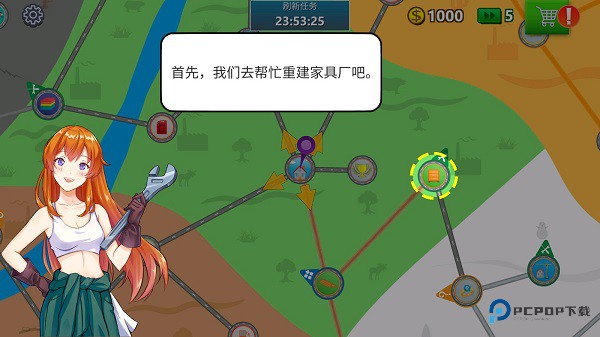 3、接下来跟随任务指引,先帮忙重建家具厂。点击图中所指位置,你会了解到详细的任务提示。