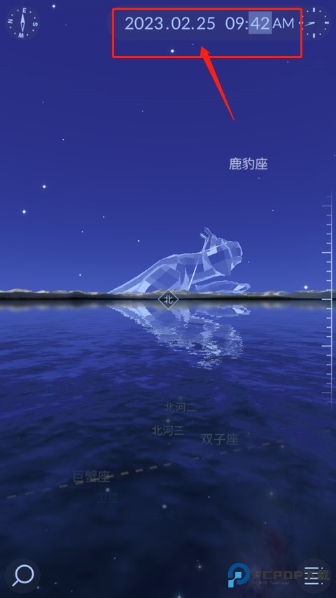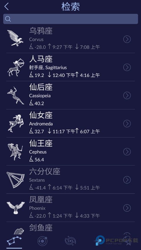3、点击屏幕左下角搜索标签,可以直接搜索想要观看星座或者恒星;