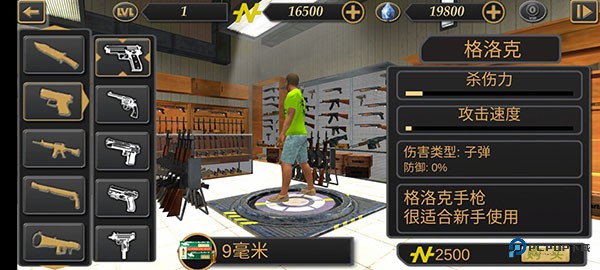价格:2500金币,伤害类型:子弹;使用9毫米子弹,杀伤力低,攻击速度极慢;很适合新手使用